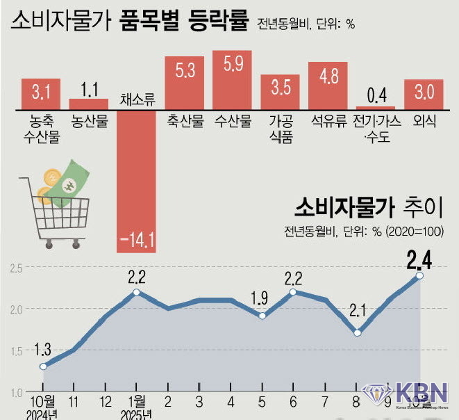 10월 전남 소비자물가상승률은 2.4%로 2024년 7월(2.9%) 이후 최고를 기록했다. 생활물가상승률은 2.3%다.