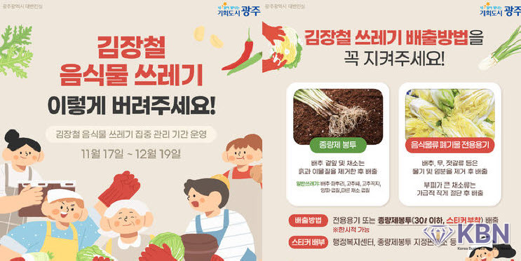 광주시가 김장철에 발생하는 음식물쓰레기를 효율적으로 처리하기 위해 한시적으로 종량제봉투 배출을 허용한다.