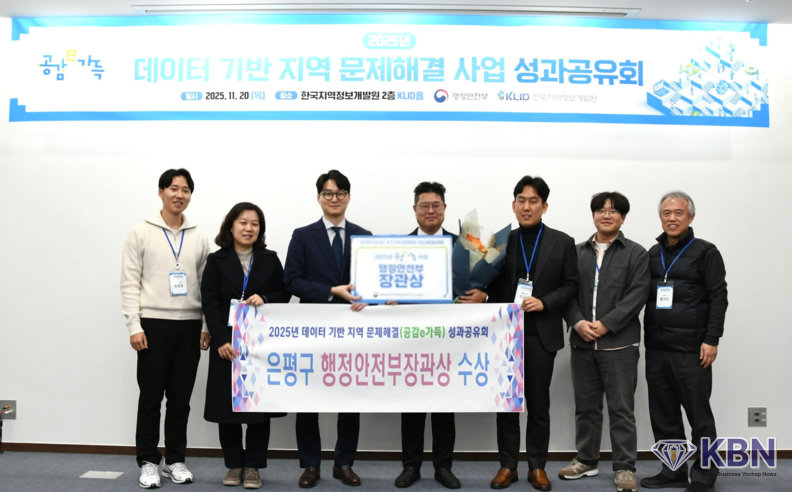 (서울=한국벤처연합뉴스) 송인경 기자 = 서울 은평구(구청장 김미경)는 지난 20일 한국지역정보개발원 KLID홀에서 열린 성과공유회에서 ‘2025년 데이터 기반 지역 문제해결(공감e가득) 사업’에서 AI-IoT 기반 전동보장구 이동 안전 플랫폼 구축 성과를 인정받아 행안부장관상을 받았다고 밝혔다.