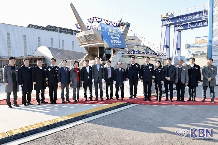 진수식은 전날 영암 대불산단의 친환경 선박 제조업체 ㈜빈센 본사에서 조선·해양산업, 전라남도와 유관기관 관계자 등 100여 명이 참석한 가운데 열렸다.
