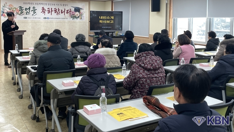 광주시교육청송정다가치문화도서관(이하 송정다가치문화도서관)은 29일 도서관 4층 강의실에서 ‘2025학년도 초등학력인정 성인교육 이수 및 졸업식’을 개최했다.