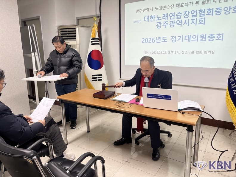 사)대한노래연습장업협회중앙회 광주광역시지회 (회장 구일암)는 오늘 오후 2시 광주광역시 서구 상일로 56, 5층 본 협회 회의실에서 윤갑현 운영위원 진행으로 2026년도 정기대의원총회를 개최하였다.
