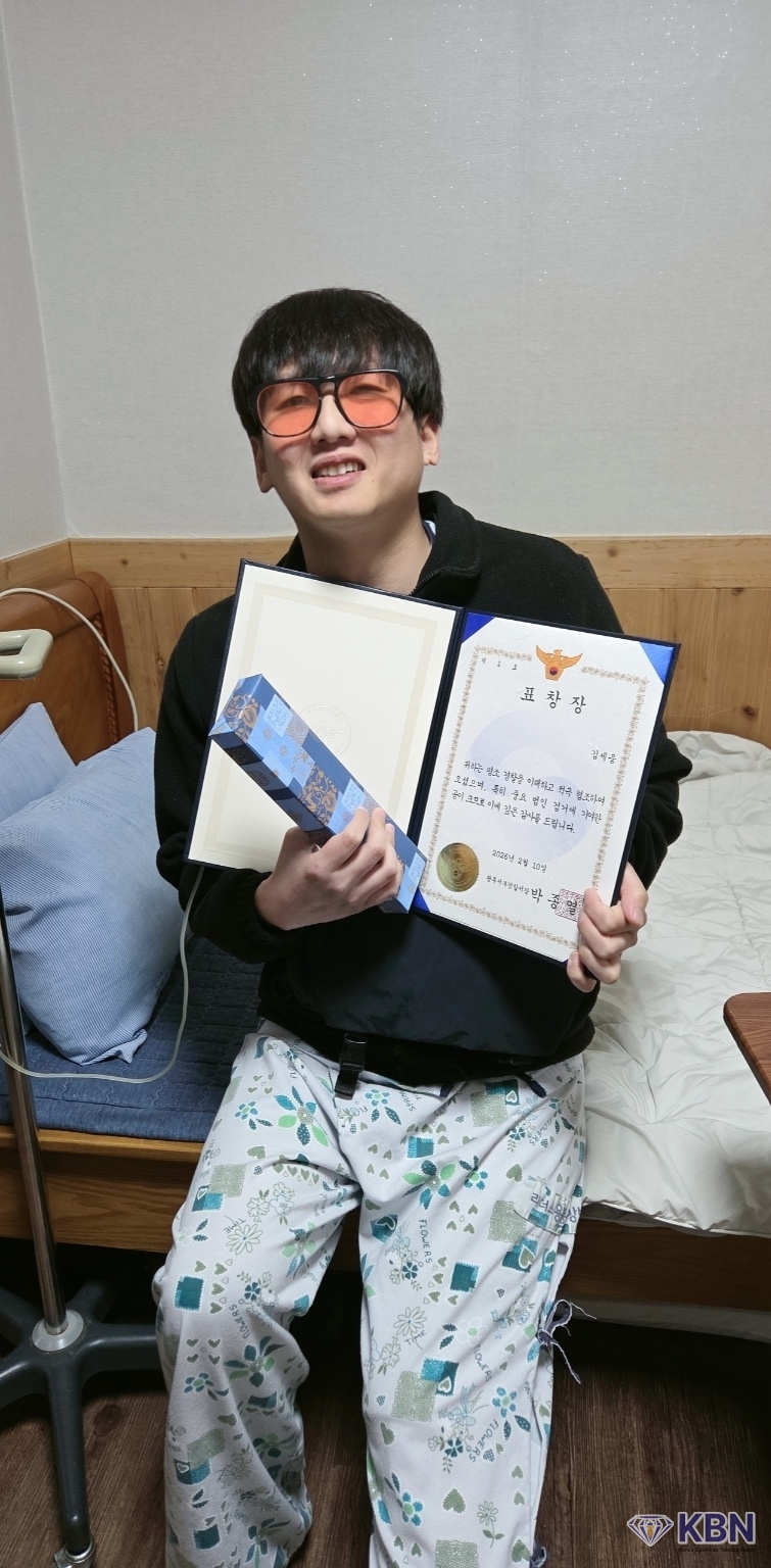 광주서부경찰은 10일 김세웅 씨의 시민적 용기에 대해 용감한시민상 표창장을 수여했다.