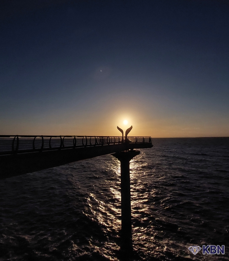 바다 위로 길게 뻗은 전망대 끝, 마치 비상을 꿈꾸는 날개 형상의 조형물이 지는 해를 조심스레 받쳐 들고 있습니다. 이는 마치 숨 가쁘게 달려온 오늘의 수고를 위로하며, 잠시 쉬어가라고 건네는 자연의 배려와 같습니다. 일몰은 끝이 아니라, 우리 삶에 반드시 필요한 '아름다운 쉼표'입니다.