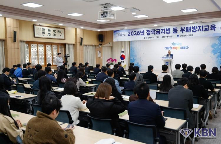 KBN 한국벤처연합뉴스 구일암 기자 | 광주시교육청은 2일 본청 대회의실에서 고위 공직자를 포함해 모든 직원을 대상으로 ‘2026년 청탁금지법 등 부패방지교육’을 실시했다.