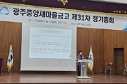 KBN 한국벤처연합뉴스 박영길 기자 | 광주중앙새마을금고(이사장 조현숙)는 2월 10일 오전 광주YWCA 강당에서 제31차 정기총회를 개최하고 2025년도 결산 및 주요 안건을 심의·의결을 하였다. 이번 총회는 최근 금융시장 변동성과 지역 경제의 어려움 속에서도 금고의 재정 건전성을 점검하고 회원 신뢰를 더욱 공고히 하기 위한 자리로 마련되었다. 조현숙 이사장은 인사말을 통해 “우리 광주중앙새마을금고는 그동안 회원여러분의 성원과 신뢰를 바탕으로 지역 금융기관으로서의 역할을 충실히 수행하며 안정적인 경영과 건전한 재정 운영을 위해 꾸준히 노력할 수 있었던 것은, 오롯이 회원 여러분 한 분 한 분의 관심과 참여 덕분”이라며 “회원의 신뢰를 바탕으로 더욱 투명하고 안정적인 경영을 이어 가겠다”고 하였다. 또한 “광주중앙새마을금고가 지역 서민금융의 든든한 버팀목이 되도록 최선을 다하겠다”고 밝혔다. 이어 김재홍 감사는 감사보고를 통해 재무 운영 전반에 대한 점검 결과를 설명하며 내부 통제 강화와 책임 경영의 중요성을 강조했다. 회원들은 보고 내용을 경청하며 금고 운영에 대한 높은 관심을 보였다. ◆총회는 1부와 2부로 나뉘어 진행되었다. 1부는 강병열 전무가 사회를