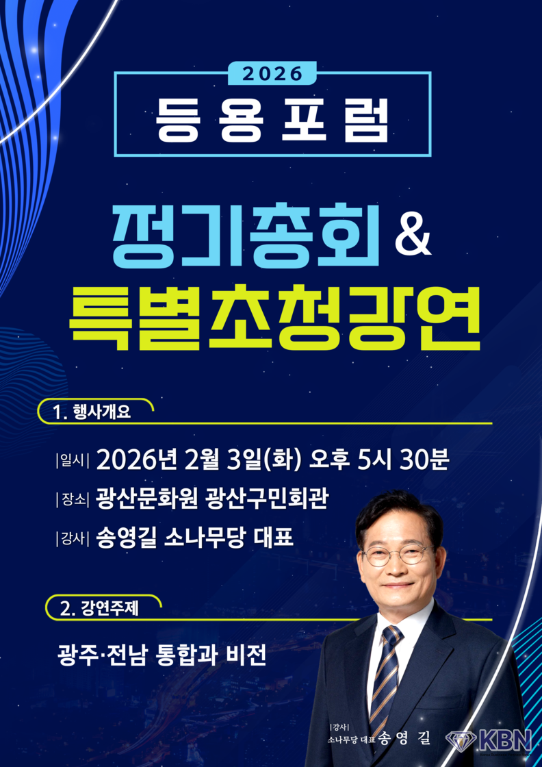 이번 행사를 주관한 허문수 회장은 2026년 정기총회를 맞이하여 새해 하례식 겸 특별 초청 강연 행사를 하게 되었다고 하면서 지금까지 매년 상반기 하반기로 나누어 명사를 초청하여 등용 포럼 회원들을 위해 추진하고 있으나 이번에는 특별히 광주·전남 통합과 비전에 대해 송영길 소나무당 대표님을 특별히 초청하여 정기총회와 더불어 행사를 준비하고 있다고 하면서 우리 광주가 올해 통합으로 특별시로 승격하여 우리 광주전남이 함께 잘사는 지역으로 변화가 되었으면 하는 마음으로 송영길 당 대표를 초청하였다고 하면서 많은분들이 참석하시어 큰 비전을 보고 우리 광주·전남 지역이 변화에 시발점이 되었으면 한다고 하였다.