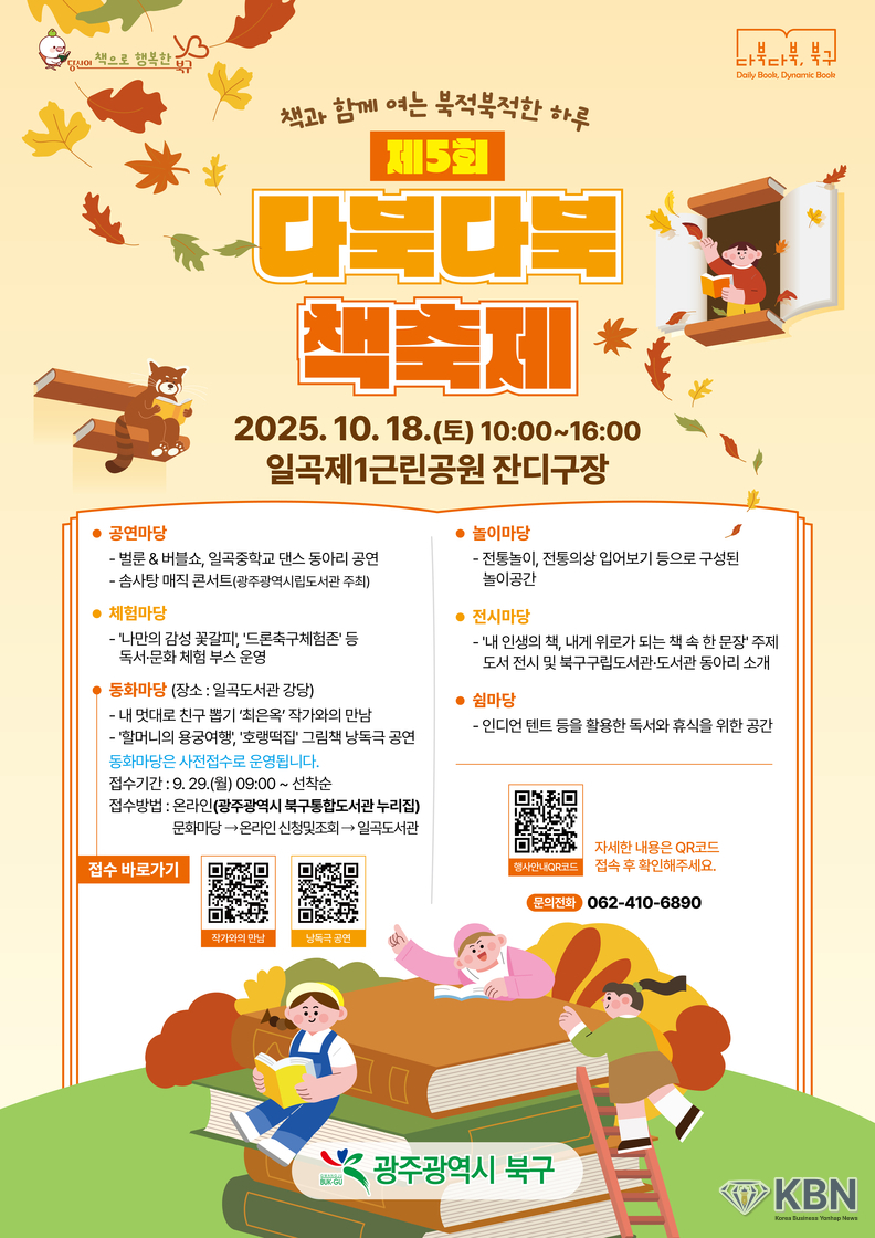 오는 18일 오전 10시부터 광주시 북구는 일곡제1근린공원과 일곡도서관 일대에서 ‘다북다북 책축제’를 개최한다고 13일 밝혔다.