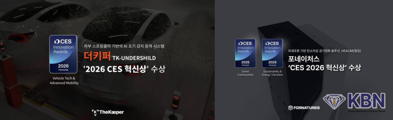 (서울=한국벤처연합뉴스) 송인경 기자 = 서울 은평구(구청장 김미경)는 은평창업지원센터 입주기업인 ‘더키퍼’와 ‘포네이처스’가 세계 최대의 전자·IT박람회인 씨이에스(CES)에서 2026 혁신상(CES Innovation Awards)을 수상했다고 밝혔다.