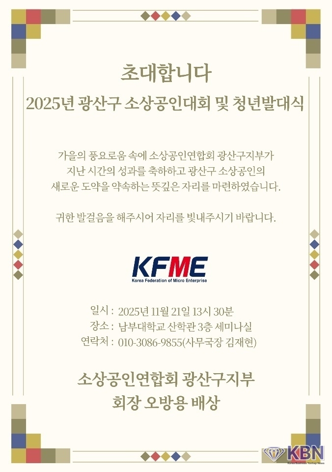 광주광역시 광산구 소상공인연합회(지부장 오방용)는 2025년도 소상공인대회 및 청년발대식을 개최한다.