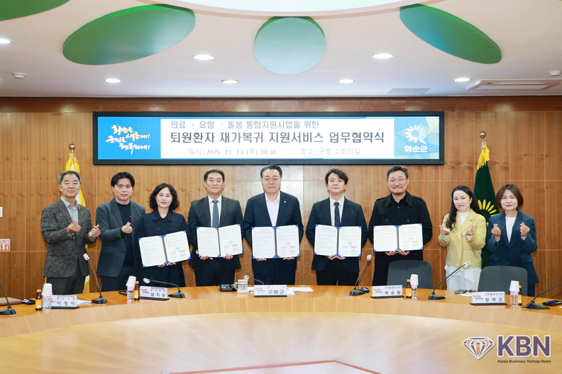전남 화순군(군수 구복규)이 내년 3월부터 본격 시행되는 의료·요양·돌봄 통합지원사업에 선제적으로 대응하기 위해 군청 소회의실에서 ‘퇴원환자 재가복귀 지원서비스’ 업무 협약을 체결했다.