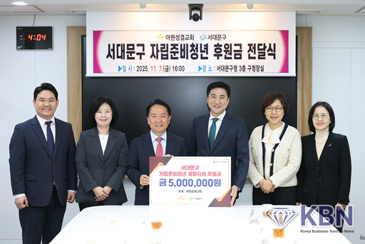 (서울=한국벤처연합뉴스) 송인경 기자 = 서대문구(구청장 이성헌)는 최근 아현성결교회(담임목사 손제운)로부터 자립준비청년 후원금 500만 원을 기탁받았다고 17일 밝혔다.