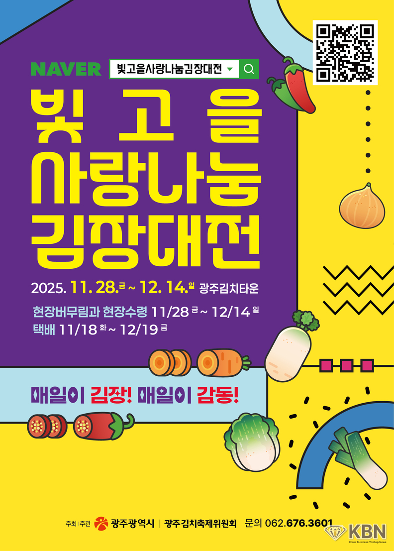 광주광역시(시장 강기정)는 오는 11월28일부터 12월14일까지 광주김치타운에서 ‘2025년 빛고을 사랑나눔 김장대전’을 연다.
