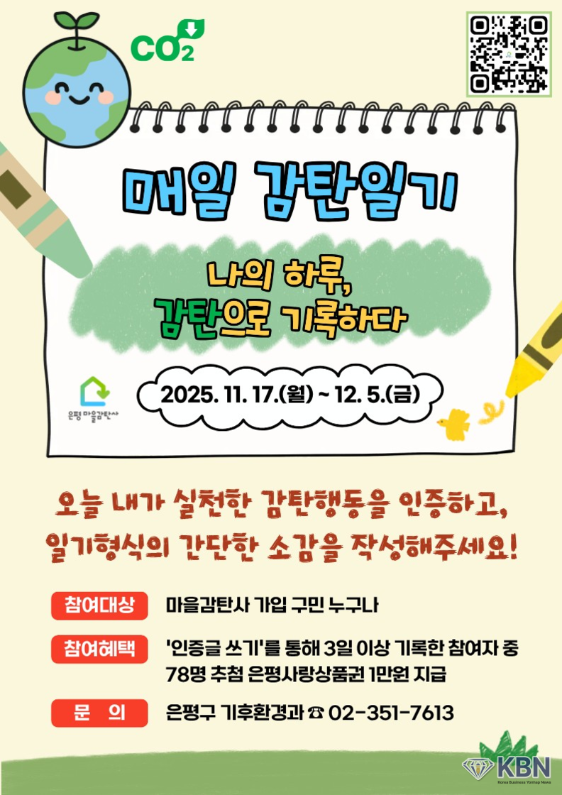 또한 ‘매일 감탄일기’ 참여자 중 일부를 추첨해 은평사랑상품권을 지급함으로써 구민들의 적극적인 참여를 독려하고 탄소중립 실천문화 확산과 기후위기 대응의 가치를 함께 나눌 계획이다.