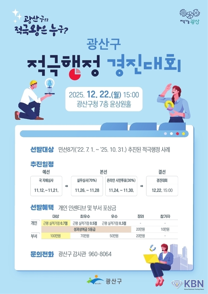 민선 8기 동안 시민을 최우선에 두고 추진돼 온 광산구 적극행정의 우수한 성과를 나누고, 시민 중심의 행정 혁신을 확산하는 취지로 마련한 행사다.