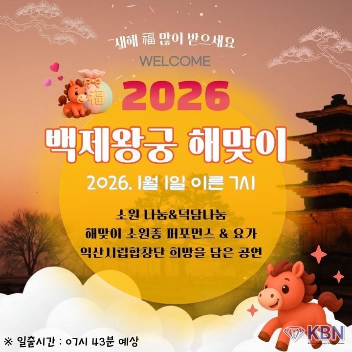 2026년 병오년(丙午年) 새해 첫날 익산 백제왕궁에서 첫 일출을 맞는 특별한 해맞이 행사가 열린다.