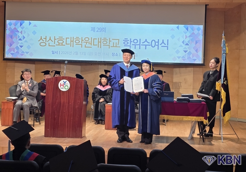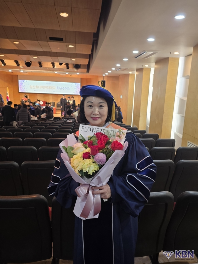 2026년 2월 13일, 성산효대학원대학교 강당은 여느 학위수여식보다 뜨거운 열기로 가득 찼다. 수많은 졸업생 사이로 단정하게 박사학위복을 갖춰 입은 한 여성이 단상에 올랐다.