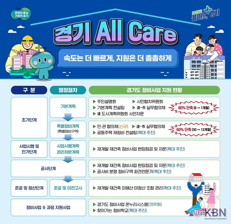 경기 All Care(올 케어)는 1기 신도시를 포함한 노후계획도시와 원도심 정비사업시 복잡한 행정절차와 이해관계자 간 갈등으로 인한 사업 장기화 및 추진 동력 저해(평균 10~15년 소요)를 개선하기 위한 조치다.