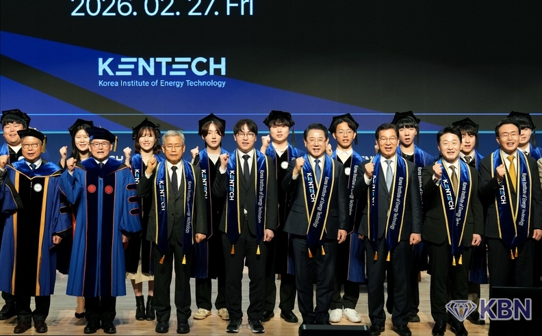 김영록 전라남도지사는 27일 한국에너지공과대학교에서 열린 첫 학위수여식에 참석해 졸업생을 축하했다.