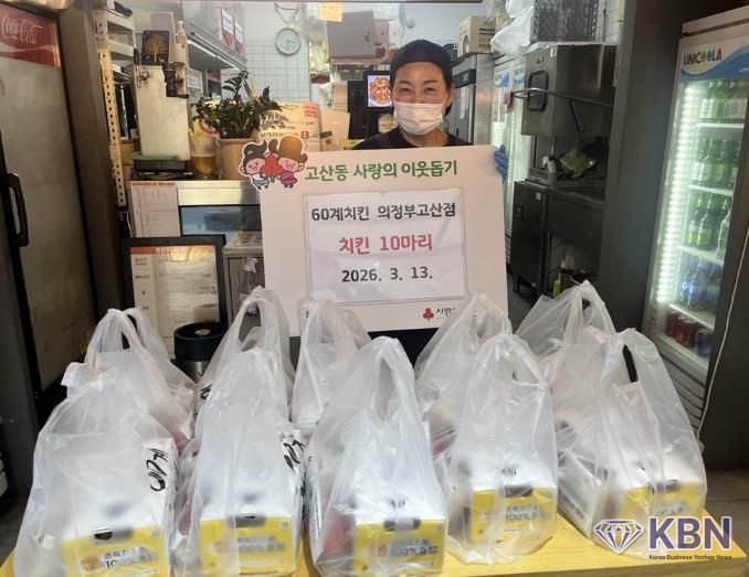 KBN 한국벤처연합뉴스 김만일 기자 | 의정부시 고산동주민센터는 3월 13일 60계치킨 의정부고산점이 고산동에 치킨 10마리를 기부했다고 밝혔다.