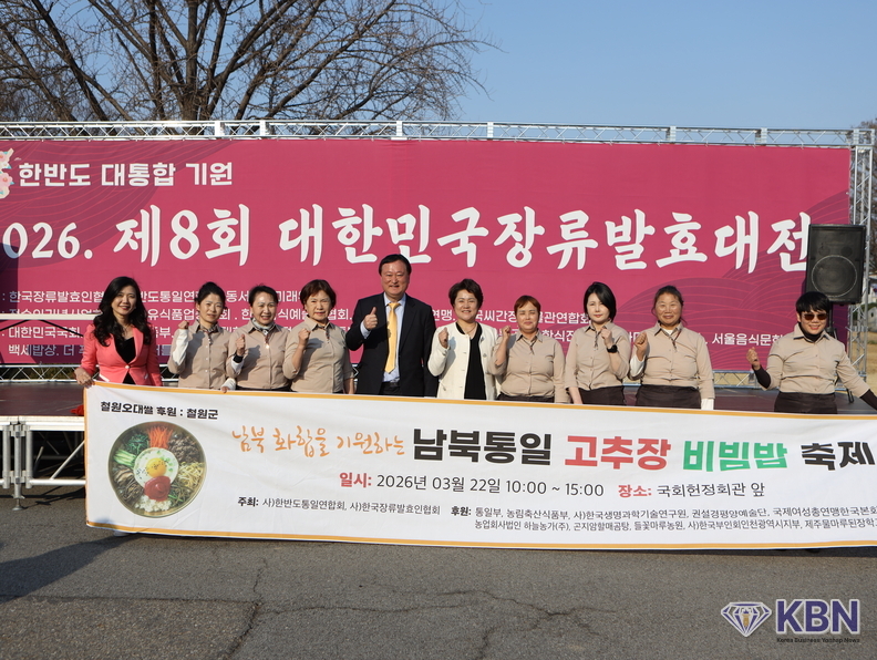 남북 화합과 한반도 평화를 기원하는 ‘통일 고추장비빔밥 축제’가 2026년 3월 22일 서울 국회헌정회관 앞 잔디광장에서 개최됐다.