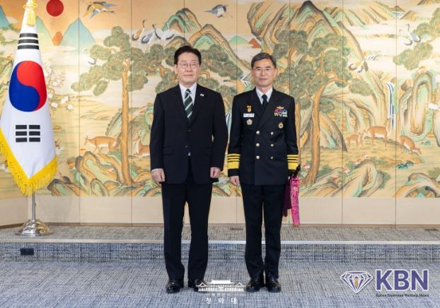 KBN 한국벤처연합뉴스 구일암 기자 | 이재명 대통령은 3월 27일 서울 용산 국방부에서 김경률 신임 해군참모총장에게 삼정검 수치를 수여했다.