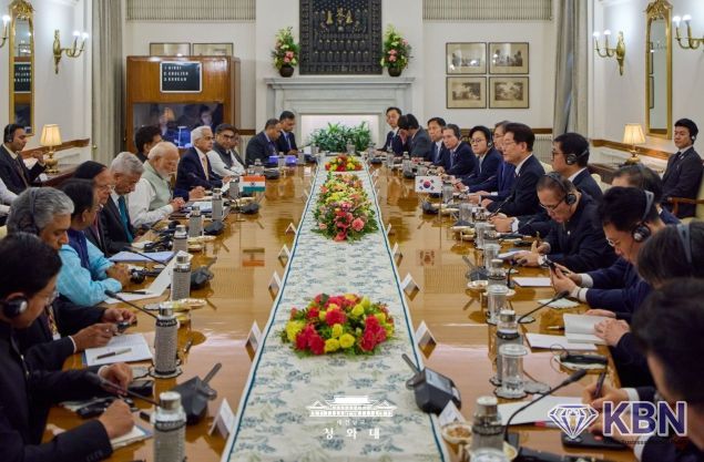 이 대통령은 인도의 인구와 GDP 규모에 비해 우리 교민 수는 1만 2000명, 우리 진출 기업 수는 670여 개 정도로 한-인도 관계가 정체돼 있다면서, 이번 회담을 통해 민간 교류, 경제 협력, 안보 협력 등 지금과는 차원이 다른 협력을 해 나가자고 했다.