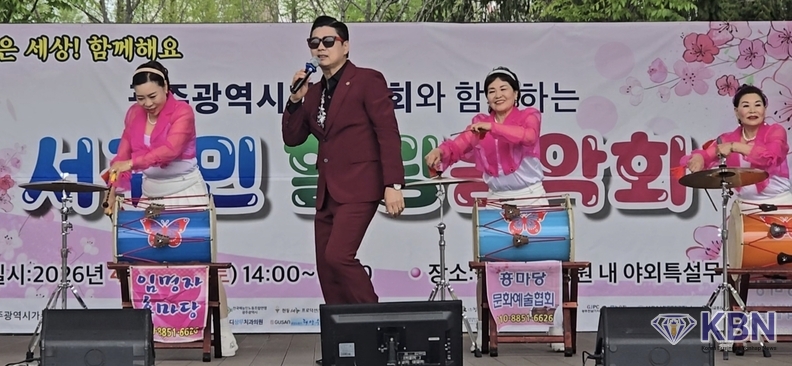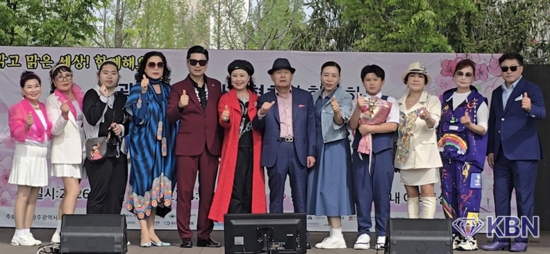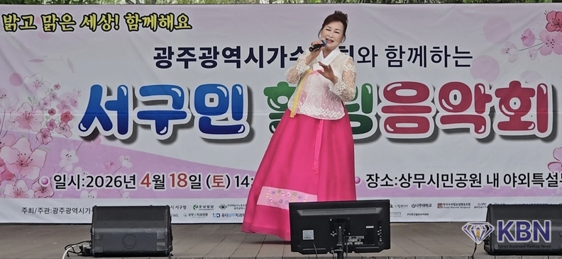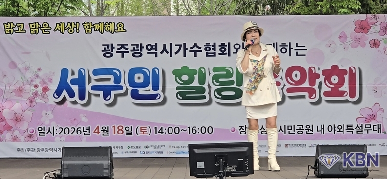 광주광역시 가수협회 (회장 천병영 / 천둥)은 광주 서구민 힐링 음악회를 “밝고 맑은 세상! 함께해요!”라는 주제로 오늘 오후 2시부터 광주광역시 서구 상무시민공원 내 야외 특설무대에서 김애림 가수 진행으로 행사를 개최하였다.
