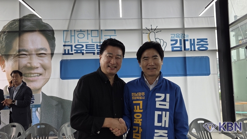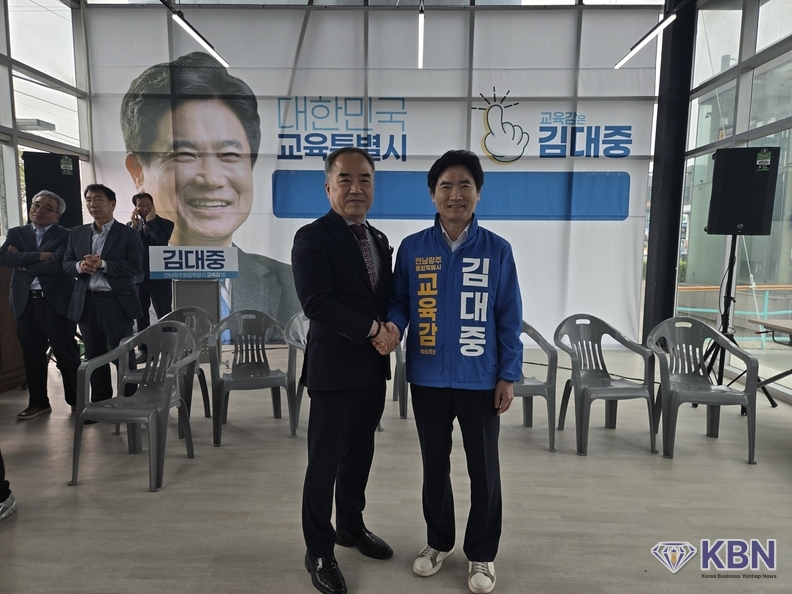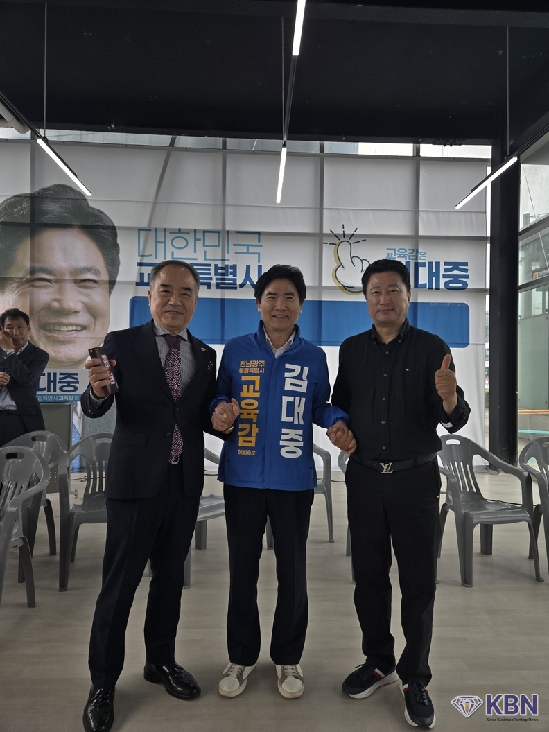 오방용 광주광역시 광산구 소상공인연합회 (회장 오방용)과 KBN 한국벤처연합뉴스 구일암 발행인은 오늘 오전 11시 김대중 전남·광주통합 교육감 후보 선거사무소를 방문하여 김대중 교육감 후보를 격려하였다.