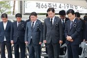 KBN 한국벤처연합뉴스 민형선 기자 | “김주열 열사를 비롯한 수많은 선열의 희생이 오늘의 민주주의를 만들었음을 잊지 말아야 합니다.” 김관영 전북특별자치도지사는 19일 남원시 김주열 열사 추모공원에서 열린 제66주년 4·19혁명 기념식에 참석해 민주영령을 추모하고, 4·19 정신 계승 의지를 다졌다. 이날 행사는 정동영 통일부 장관과 박희승 국회의원, 최경식 남원시장, 이영노 남원 김주열 열사 기념사업회장, 도민 등 300여 명이 참석한 가운데 민주주의 발전의 의지를 다졌다. 기념식은 국민의례에 이어 김주열 열사 약력 소개, 기념사, 추도사, 남원시립국악단의 기념 공연, 4·19의 노래 제창, 묘역 참배 순으로 진행됐다. 특히 4·19혁명희생유족과 보훈단체 회원, 학생 등 다양한 세대가 한자리에 모여 민주주의의 소중함을 되새겼다. 김 지사는 추도사에서 “4·19혁명은 단순한 정권 교체를 넘어선 위대한 승리의 역사”라며 “평범한 시민의 힘으로 절대 권력을 무너뜨린 시민혁명의 전형이자 대한민국 민주주의의 초석을 다진 역사적 전환점”이라고 강조했다. 이어 “1960년 2월 28일 대구에서 피어오른 민주
