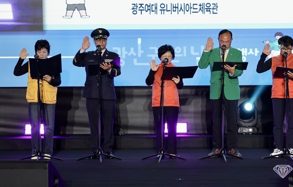 KBN 한국벤처연합뉴스 구일암 기자 | 광주광역시 광산구 하남동 경암근린공원에서 제29회 노인의 날 기념행사 개최하여 오늘 행사는 이진주 아나운서 사회로 진행하여 식전 행사로 기타연주 및 댄스팀들의 공연으로 참석자들에게 공연으로 즐거움을 선사하였다. 사단법인 대한노인회 광주광역시 광산구지회(지회장 유한봉)는 오늘 오전 10시부터 광주광역시 광산구 노인회 회원들과 내, 외빈들이 참석하여 행사를 성대하게 개최하였다. 오늘 행사에는 광주광역시 강기정 시장과 광주 광산구 박병규 청장을 비롯하여 광주광역시의회 정무창 전 의장, 최지현 의원, 이귀순 의원, 박수기가 의원과 광주 광산구의회 김명수 의장, 박해원 운영위원장, 박현석 행정자치위원장, 양만주 시민안전위원장, 김태완 의원, 윤혜영 의원, 공병철 의원, 정재봉 의원, 국강현 의원, 박미옥 의원 등 다수의 의원과 각 기관의 기관장들이 참석하였으며, 이병훈 호남발전특별위원회 수석위원장과 민형배 국회의원, 박균택 국회의원, 이정선 광주광역시 교육감등은 일정상 참석하지 못하고 축기로 대신 축하를 하였다. 사단법인 대한노인회 광주광역시 지회 정광영 회장과 주병진 수석회장과 광주 남구 나각균 지회장과 다수의 임원들이 참석하